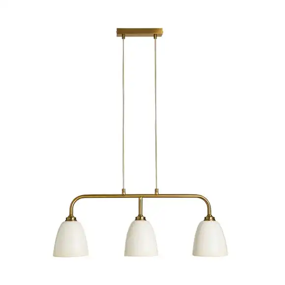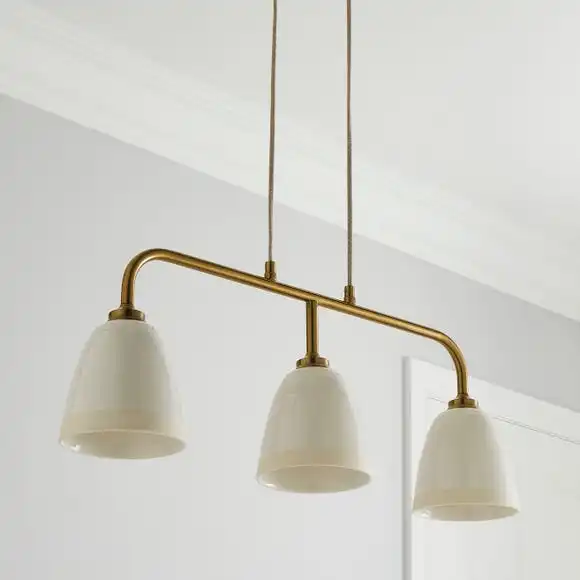 Add a contemporary element to your home décor with this stunning Churchgate Harby 3 Light Ceramic Bar Fitting, beautifully crafted with White ceramic glazed heads, finished with an antique gold metal bar held by a White twisted cable. This light fitting will fit seamlessly with any home styles, with matching family items to help complete the look.