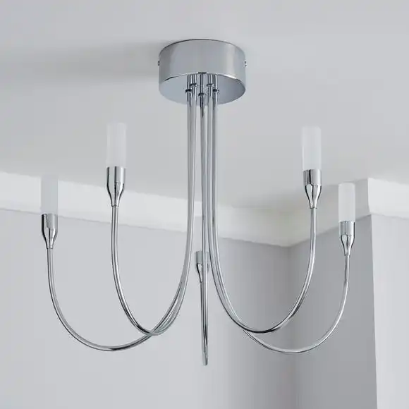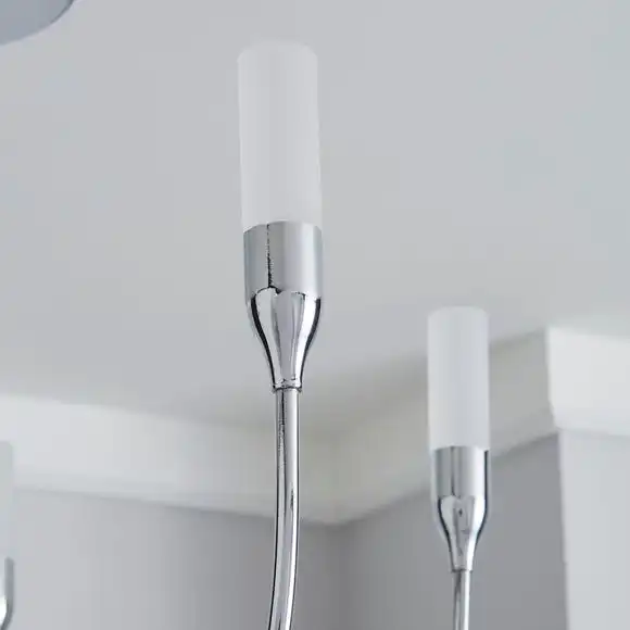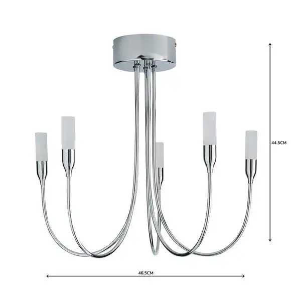 Complete your room with this stunning 5 Light LED Chandelier that will be sure to make a statement in your home. This light has integrated LEDs adjustable arms and opal acrylic shades.