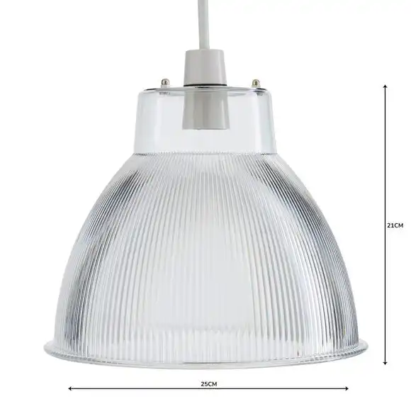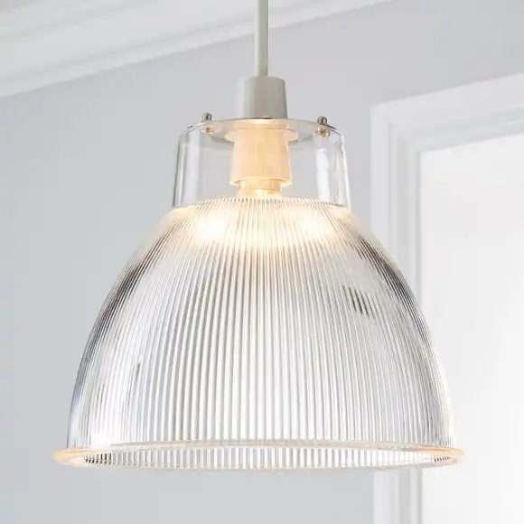 The Alanya east fit pendant has a dome shape shade, with chrome detail and ribbed texture. Made from clear plastic this will give an modern look to your home.