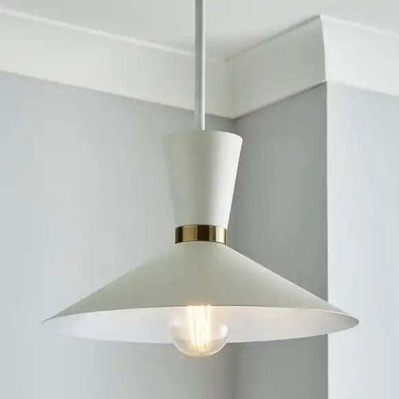 Bring a modern feel to your home with the elegant Archie Easy Fit Pendant. Available in a choice of colours with matching family items available, this stylish easy fit pendant features a retro style shade with a stunning matte finish and satin brass metal details.