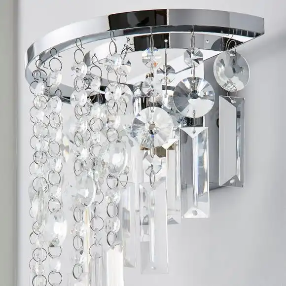 Add a luxurious touch to your bathroom with this elegantly designed Bel Air Bathroom Wall Light. Featuring beautiful strands of faceted beads cascaded around the light with a chrome polished finished base. With a IP44 rating, this wall light is suitable to use in the bathroom.