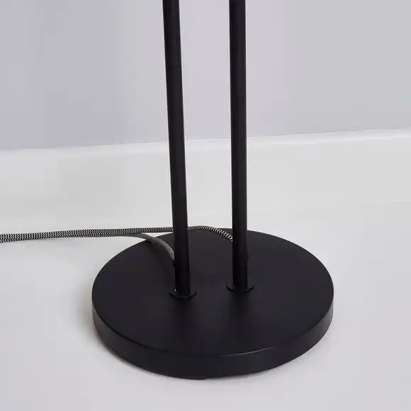 This stylish floor lamp with a contemporary design and modern Herringbone flex will complement an array of home decors beautifully, alongside its stunning, matt black colourway. Both of the bulbs have separate switches, making it an attractive piece and matching family items are also available to help coordinate any room of the home.