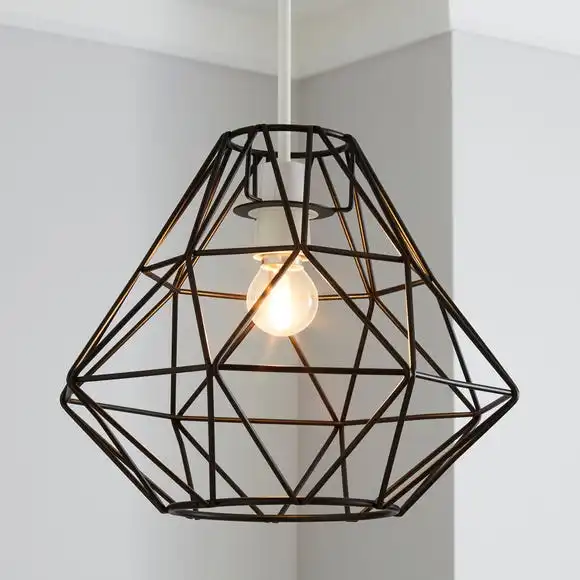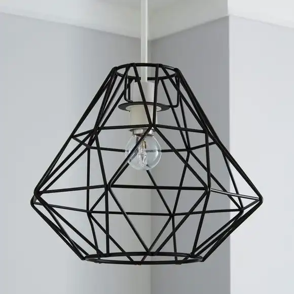 Featuring a contemporary geometric frame this ceiling pendant has one light bulb fitting and is complete with a black painted finish. The modern, industrial design would complement a variety of spaces and is perfect for adding a contemporary touch to your home.