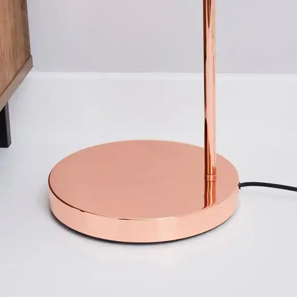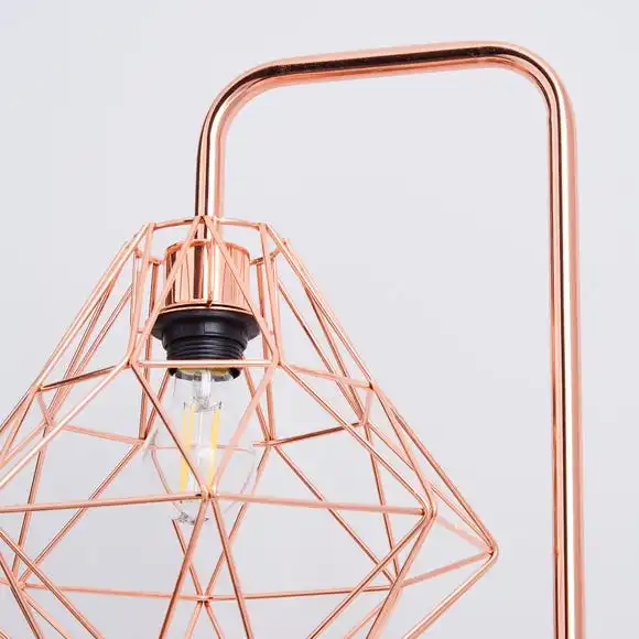 Add a contemporary element to your home décor with this stunning floor lamp, featuring a geometric frame head with an inline floor switch, length 100cm,and completed with a smooth copper finish.
