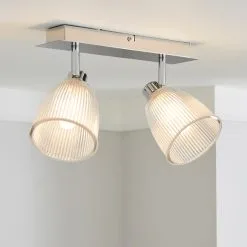 The Bremont Light features dimmable setting, adjustable heads with a stunning ribbed glass design and a chrome finish. Suitable for use in any room of the home.