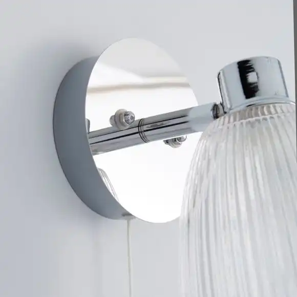 The Bremont Light features an adjustable head with a stunning ribbed glass design. Suitable for use in any room of the home, including the bathroom. Featuring a chrome finish and a functional pull cord included.