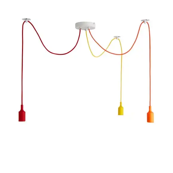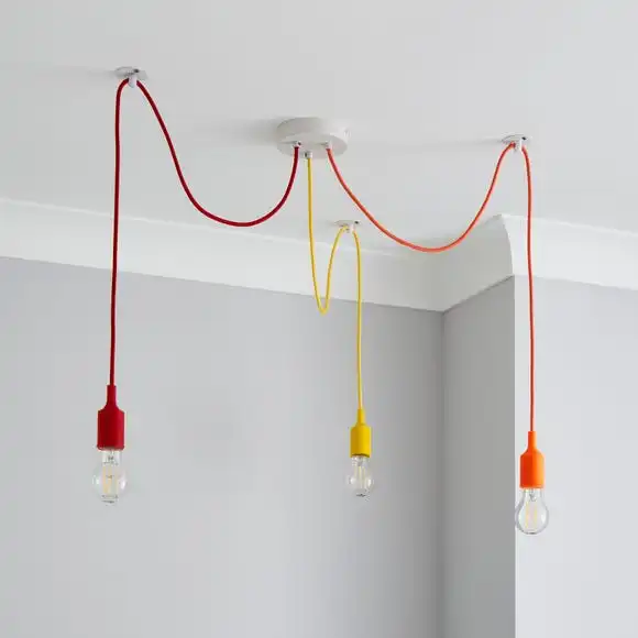 This fun multicolour Flex 3 Light Spider Cluster Ceiling Fitting has a simple yet contemporary design that will complement an array of home decors beautifully. Featuring a white base with three height adjustable multicoloured silicone rubber flex, perfect for adding a unique touch to your kids room. This piece is dimmable compatible and matching family items are available, helping to coordinate your home to create your desired look.