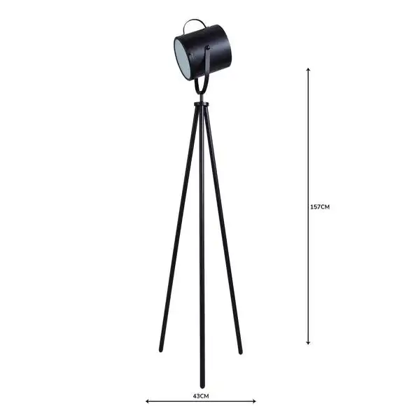 Add a contemporary yet classic touch to your home décor with this floor lamp, featuring chic tripod legs and designed with clear Perspex and adjustable shade angle, completed with a matt black finish.