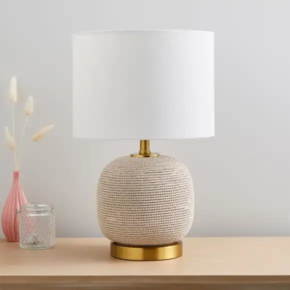 Offering a contemporary classic style, the Clementine table lamp combines a natural finished rope wrapped base with a stunning ivory linen shade and brushed satin brass for a truly timeless, yet luxurious look.
