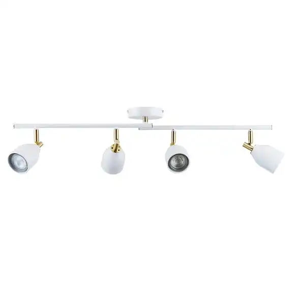 Featuring a bar with four adjustable, dimmable lights, this contemporary LED spotlight is crafted with an on-trend, modern finishes in an elegant gloss white and a golden satin brushed effect.