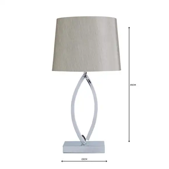 Perfect for adding a modern touch to your home, our sleek table lamp is crafted with an abstract curved metal stem and a metallic silver lampshade made from silk. This contemporary design will complement most interior styles.