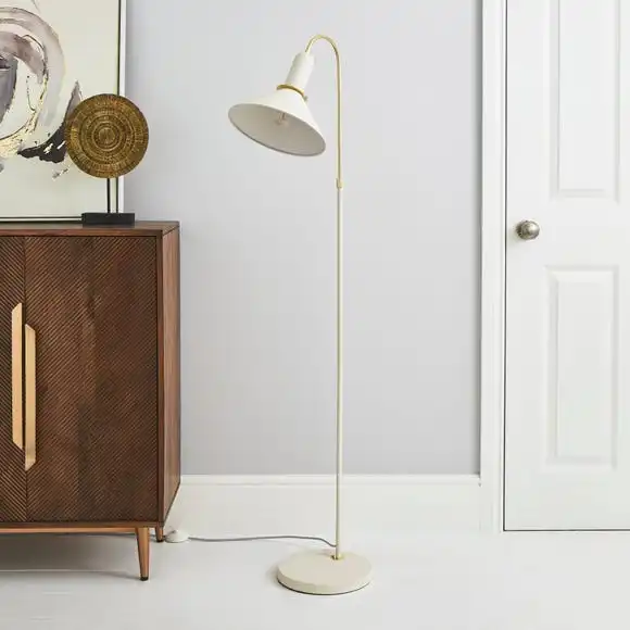 Featuring a simple yet stylish design, the perfect addition for any modern home. The Corben Floor Lamp is beautifully designed with a white sand finish and satin gold plate detailing. Made from steel, this luxurious floor lamp comes with an inline switch and has matching family items available to help coordinate your home.