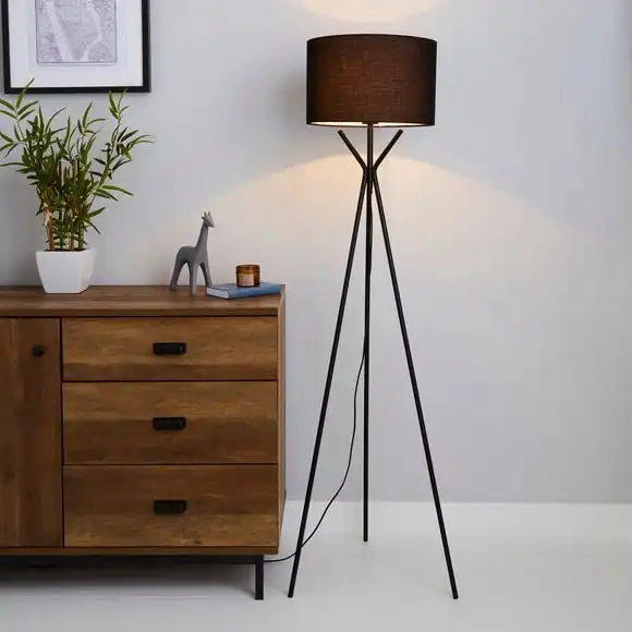 Designed with a tripod base, this floor lamp features a cotton blend shade with a matt black base and a cable length of 150cm.