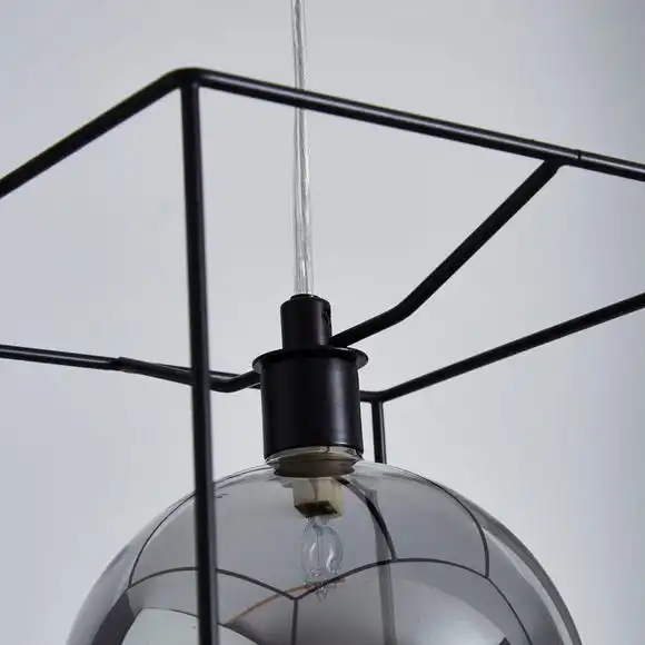 This light fitting has a black wire frame with cascading pendants, with each shade having a smoked glass finish. This light is also compatible with a dimmer switch and bulbs.