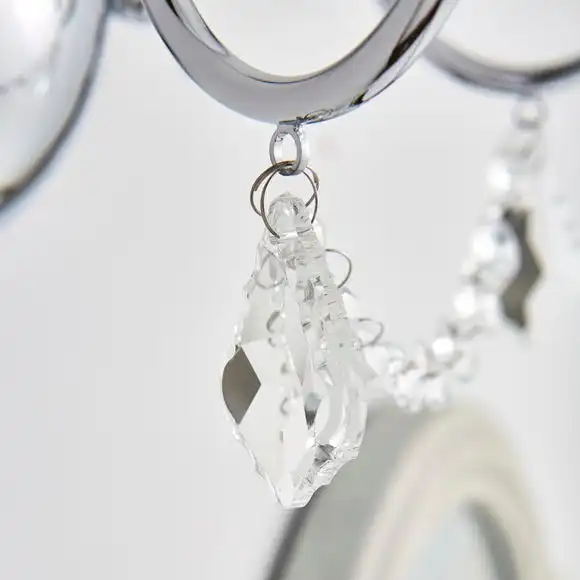 This Elizabeth dimmable wall light features a stylish chrome finish, draped in faceted glass droplets, perfect for adding a touch of glamour to your home.