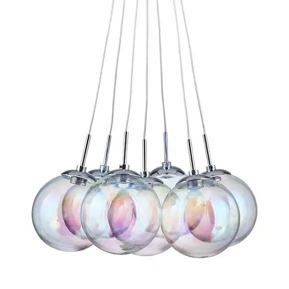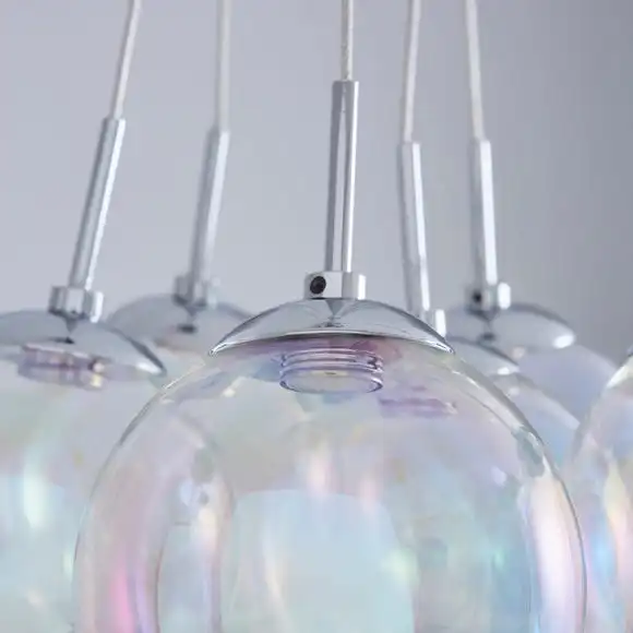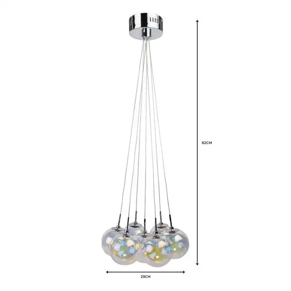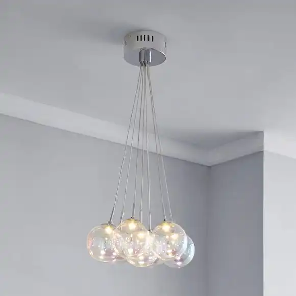 Add a touch of style to your room with this beautiful cluster fitting. Delicately crafted with seven iridescent bubble glass shades, this elegant light cluster features integrated LEDs.