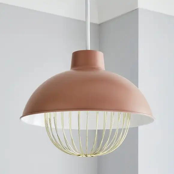 Perfect for adding a modern touch to your home, the Emzo easy fit pendant features a painted shade, available in a choice of colours to suit your space. This shade is complete with a gold toned plated cage that injects a stylish element to any modern and traditional home.