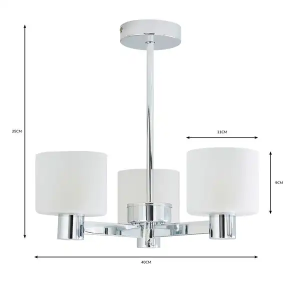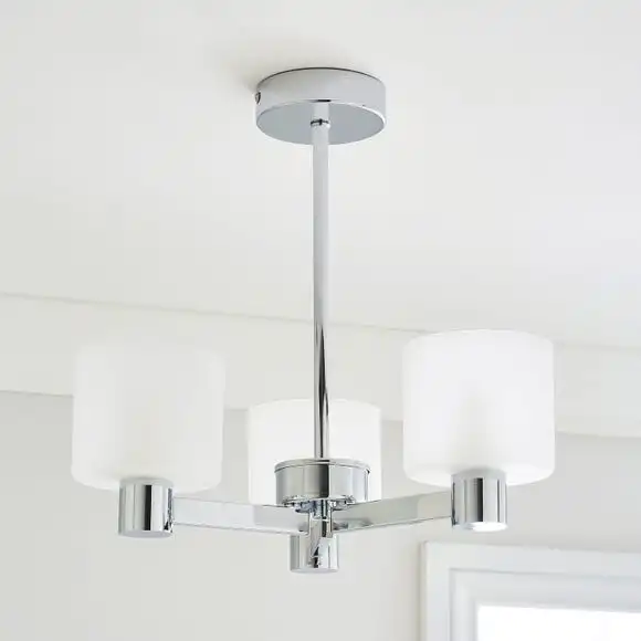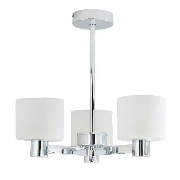 Featuring a modern luxe design, this 3 light ceiling fitting is ideal for adding a touch of contemporary style to any room. With a chrome plated finish and three frosted glass shades, this semi flush ceiling light is not only stylish but modern. This light is dimmable compatible and is perfect for use with G9 LED lamps. Good things come to those who coordinate, so why not pair this ceiling fitting with the matching wall light available to purchase separately?
