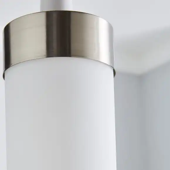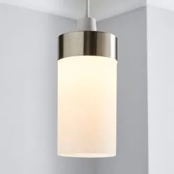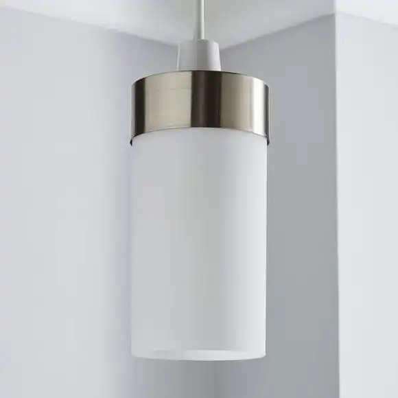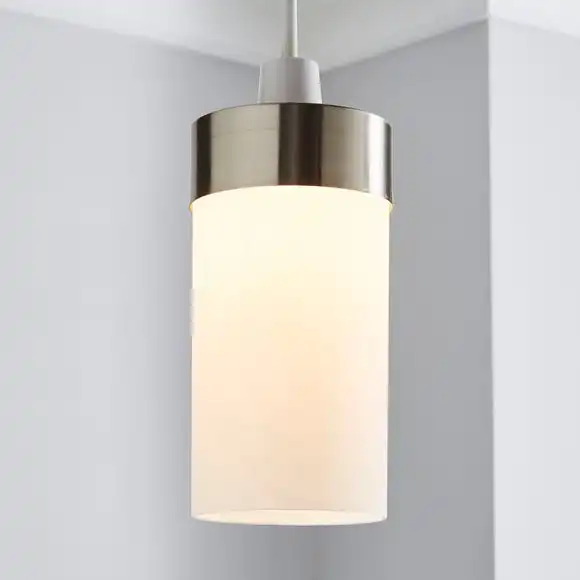 Simple yet stylish, the Ferris pendant fitting has a unique modern design. This light shade features an opaque, cylindrical glass shade, complete with a satin nickel finished metal top.