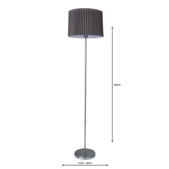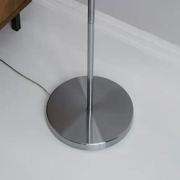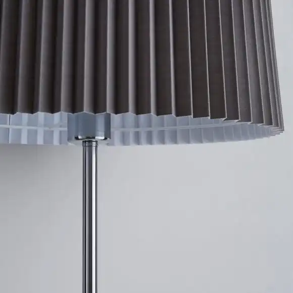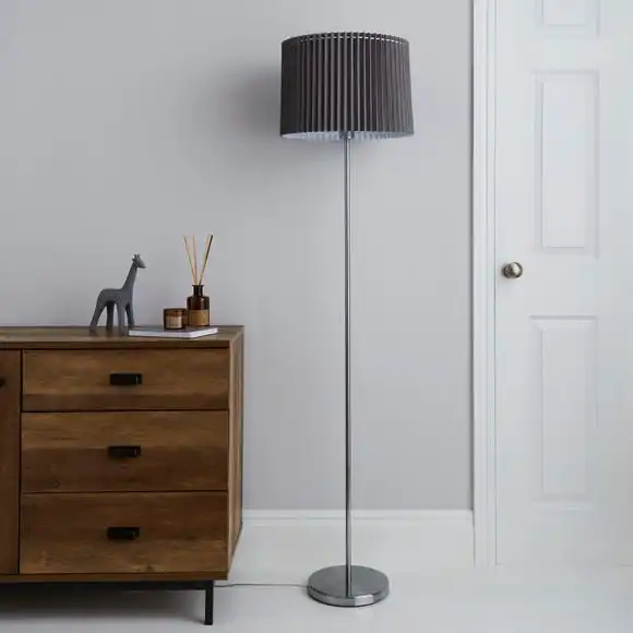 Add a stylish focal point to your room with this brushed chrome and light grey floor lamp. It features a pleated detail, cotton mix shade with an inline switch and white inner lining.