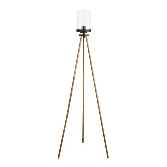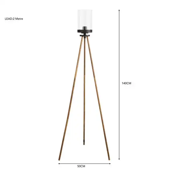 Add a unique style to your home with our Fulton tripod style floor lamp, featuring tripod style legs for a trendy look. It comes complete with a clear glass shade with an exposed bulb for that modern touch and is finished in a rustic Pine coating with an on and off foot switch which is easy to switch on and off whenever you desire.