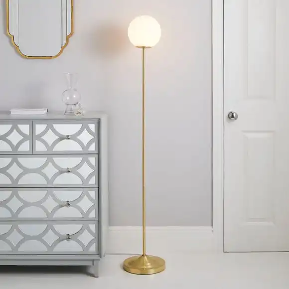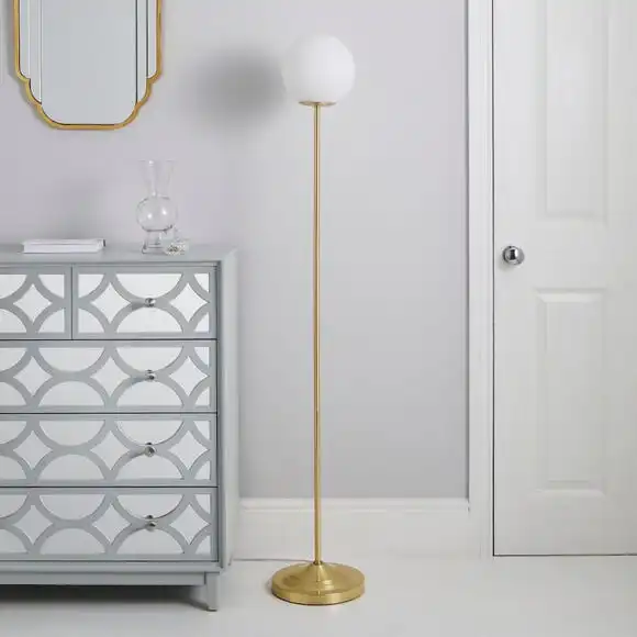 Wanting a classic, old-fashioned, but modern feel for your home? Then bring the Gigi Floor Lamp into your life. The gold stem and balled lamp provide a statement piece, with a modern colourway and twist. Mains powered and made from glass and metal, the Gigi Floor Lamp has a foot switch for ease of use.