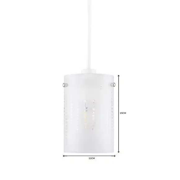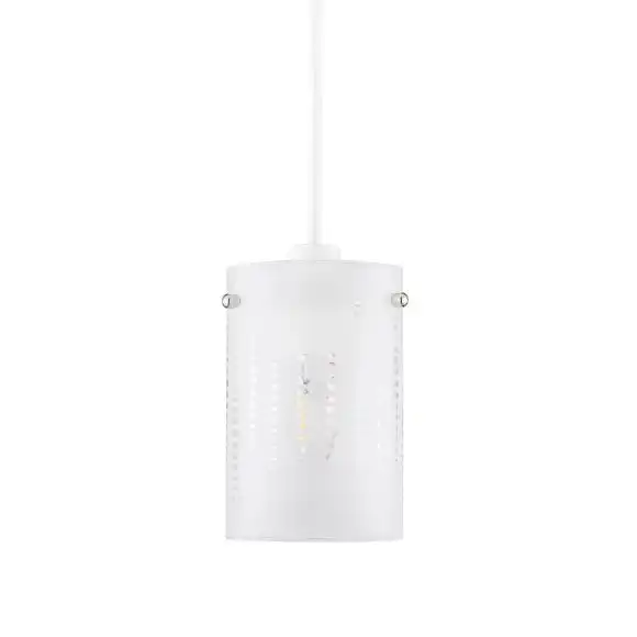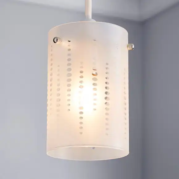 Featuring a glass cylinder pendant with an etched frosting polka dot pattern, this light would be a simple yet stylish addition to a range of rooms.