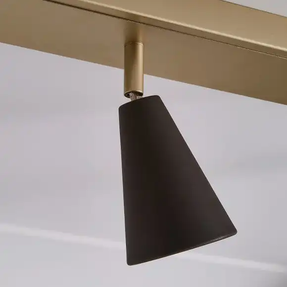 Pairing a satin gold effect finish with contrasting textured dark grey shades, the Grove 4 light spotlight bar fitting would be perfect for the stylish, modern home and features adjustable shades. Perfect for lighting your bar or dining area, this understated, contemporary fitting is fully compatible with dimmer switches, with matching items available, ideal for creating a coordinated look.