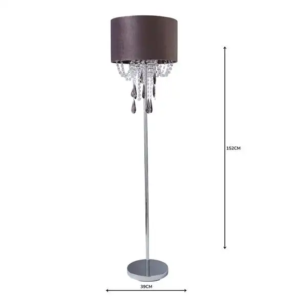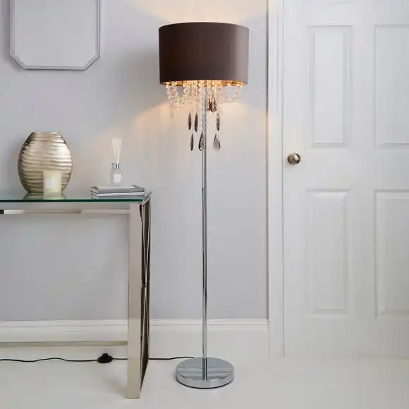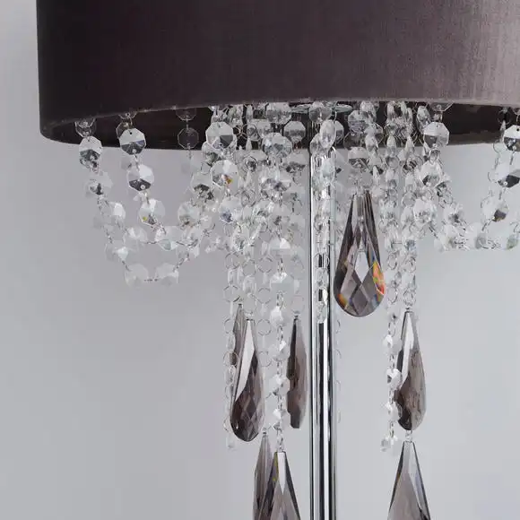 Make a glamorous statement to your home with the Halle Charcoal Floor Lamp, featuring a velvet shade with cascading acryclic drops in clear and smoke finish. This lamp also has an inline floor switch with a cable length of 100cm.