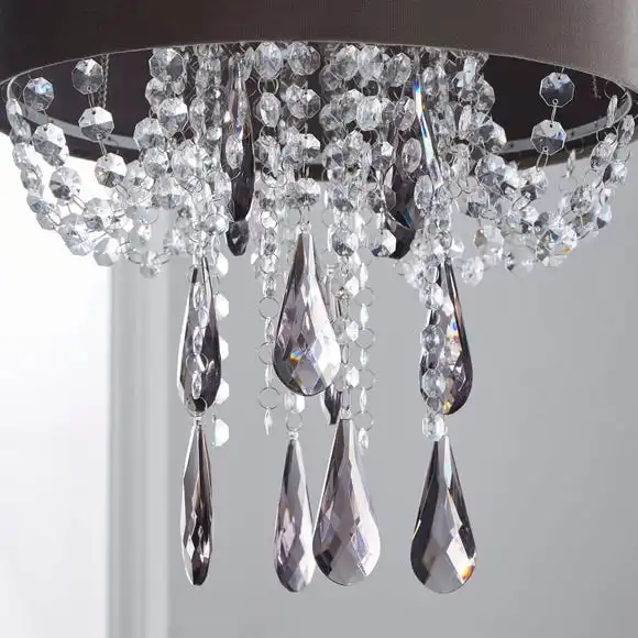 This grey velvet shade features a beautiful cascading acrylic drop design with a clear smoke finish and will connect easily to existing lamp holders.