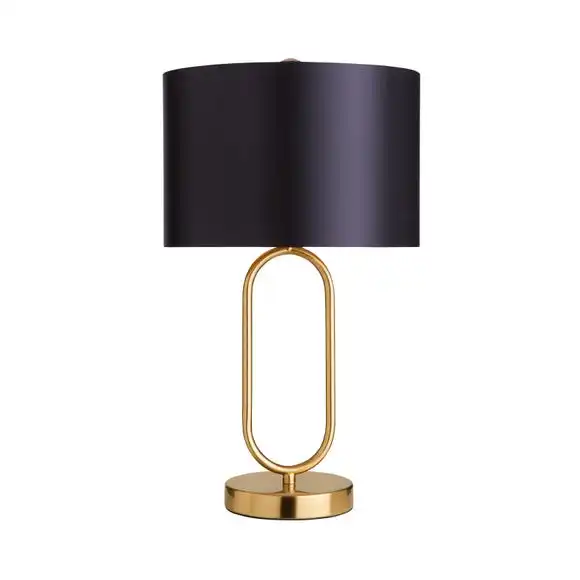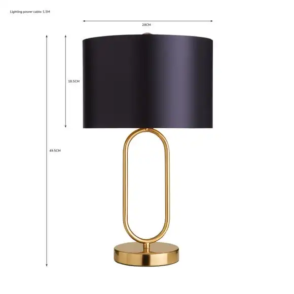 Introduce a modern and unique touch to your home with the Hanna Table Lamp, designed beautifully with a Black faux silk shade and finished with a Gold metal detailed base, complete with a black braided fabric cable. This Pendant is both stylish and attractive, pair it with matching Hanna pieces to coordinate your home décor.