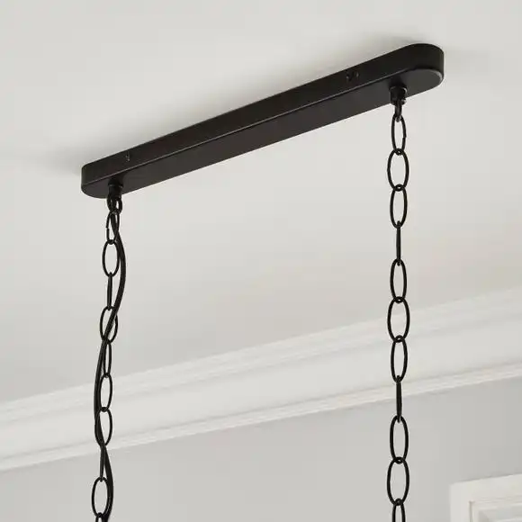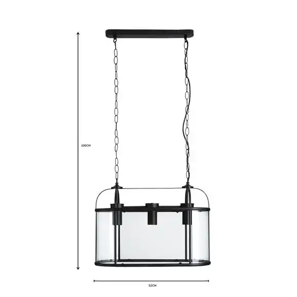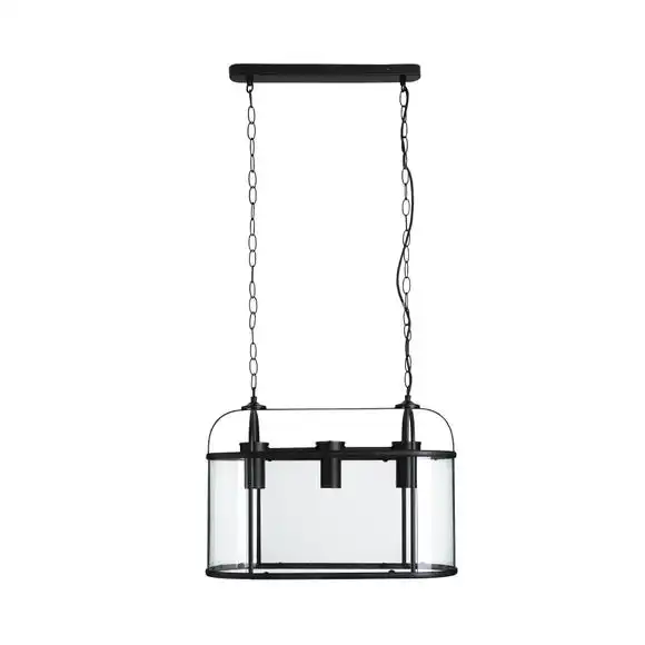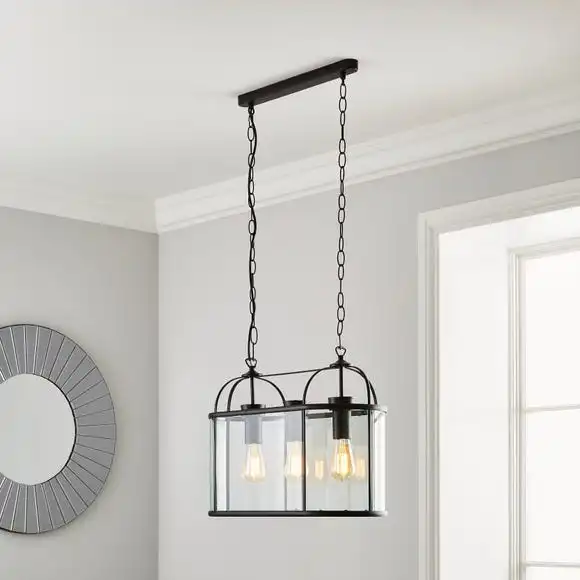 Designed with a stylish matt black finish, the Hurricane 3 Light Ceiling Fitting offers a traditional design, complete with clear glass panels and a delicate metal frame. Boasting a timeless style, this light fitting would make a luxurious statement piece in any home and features a height adjustable chain suspension. For a coordinated look, pair this ceiling fitting with matching pieces from the Hurricane range.