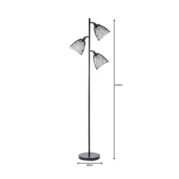 Add a contemporary and stylish addition to your home with this matt black multi head floor lamp. Designed with a unique wire framed shades, these can be re-positioned for optimum light output.