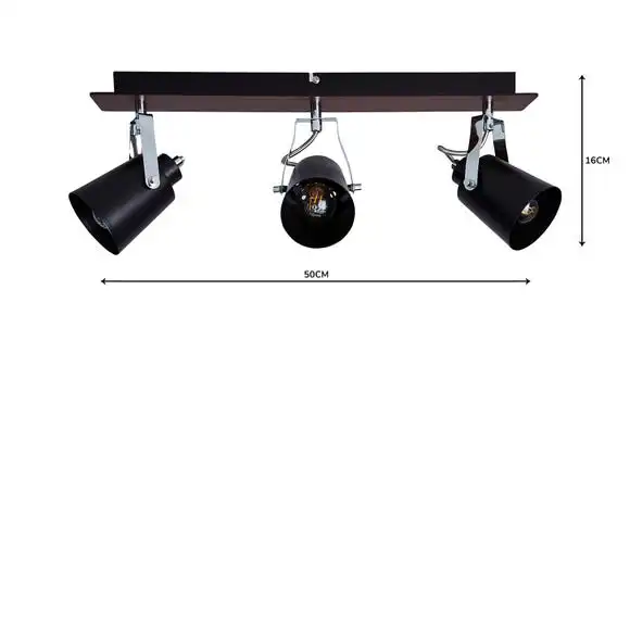 The Johan Light Fitting, features a 3 headed spotlight with a Dark Wood effect detailing. As well as having a stunning Matt black finish, this dimmable light fitting is perfect for any home.
