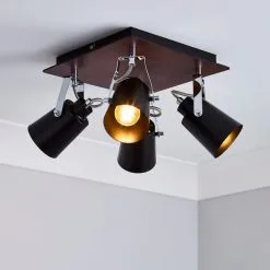 The Johan Light Fitting, features a 4 headed dimmable spotlights with a Dark Wood effect detailing. As well as having a stunning Matt black finish, this Light Fitting is perfect for any home.