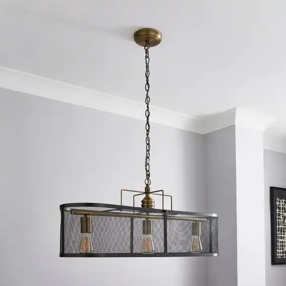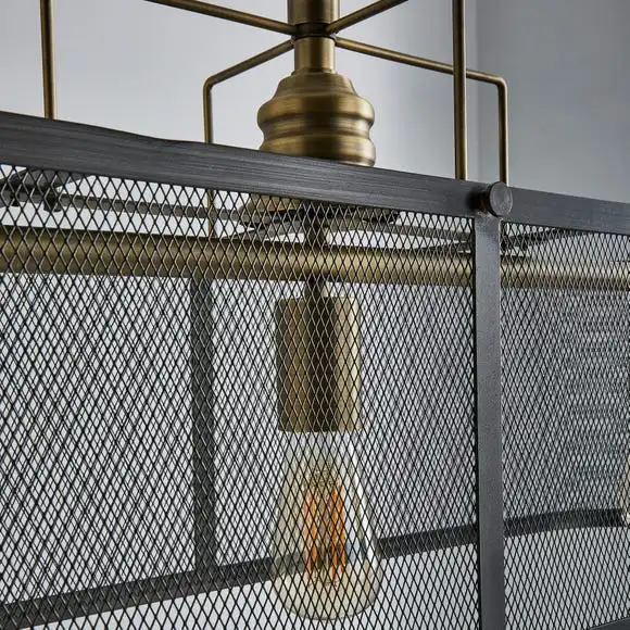 Boasting an modern design, the Kalix Diner Ceiling Fitting has a painted industrial designed metal frame with a mesh shade. The shade surrounds beautiful gold lamp holders, offering your home a contemporary look. This ceiling fitting requires 3 x GLS ES (E27) – 6W LED which is not included with the light. With an adjustable height, this ceiling light can be used with dimmable bulbs and switches. A 2-year guarantee is provided with this ceiling light.