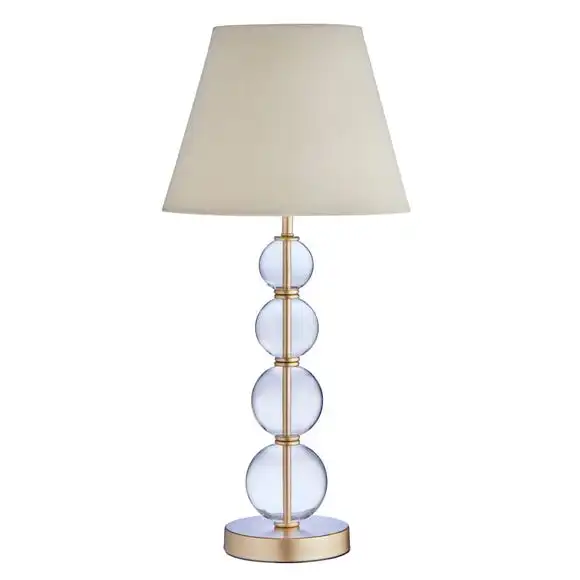 Light up your life with this contemporary and stylish table lamp. Comprising of four glass sphere detailing for a modernised look, it can be displayed in your living room or bedroom for that extra luxurious look. Finished with a simple but timeless neutral coloured shade.