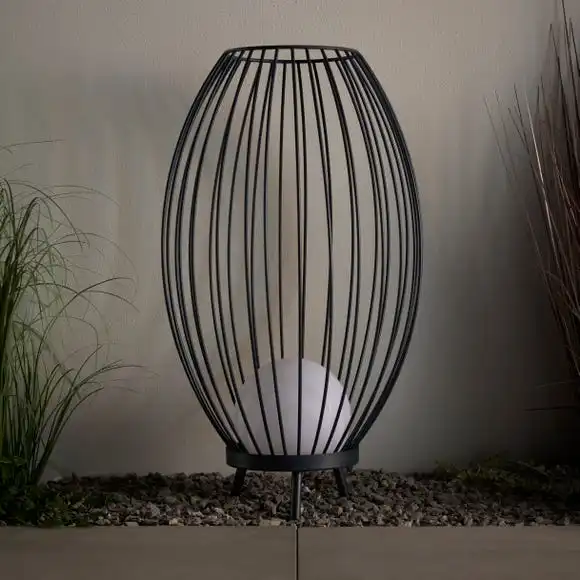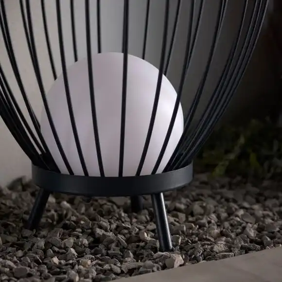 Add a stylish and modern floor lamp to your porch area. This Lanesra Outdoor Integrated LED Portable Floor Lamp has an IP44 rating, so its perfect for outdoor use. Featuring a portable design with a remove control, making it super easy to switch the light on and off. This stylish floor lamp features a metal wire circular shade and a free standing round base, complete with a charcoal grey painted finish.