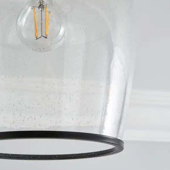 The Lenny Flush Ceiling Fitting has been beautifully designed with bubbled glass and a modern black trim for a contemporary appearance. The Lenny Flush Fitting Light is the perfect piece for adding a classic look to your home with a modern twist. Perfect for lighting hallways or any other room in your home. This piece is dimmable compatible with matching items available, making it easy to create a coordinated look in any room.