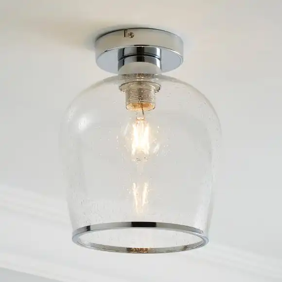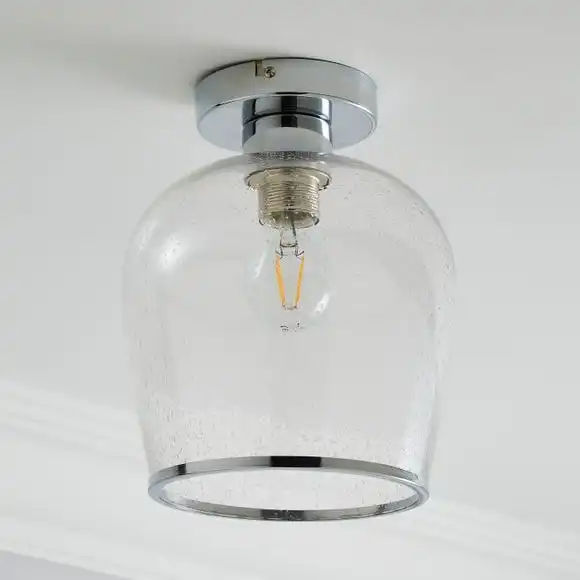 The Lenny Flush Ceiling Fitting has been crafted with bubbled glass and elegant chrome trim for the vintage yet contemporary appearance. A perfect piece for adding a classic look to your home with a modern twist. Perfect for lighting hallways or any other room, this piece is dimmable compatible, with matching items available making it wasy to create a co-ordinated look.