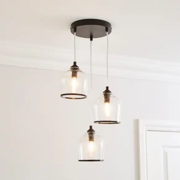 Add a luxury finishing touch to your home with our Lenny 3 Light Cluster Ceiling Fitting, made with three textured glass shades all of which are adjustable in height. They’re compatible with a dimmer switch so you can set the perfect ambience depending on the occasion. It’s delicately finished with a shiny trim and required three bulbs which are not included. This ceiling fitting is available in another colourway to suit any home colour scheme and interior decor.