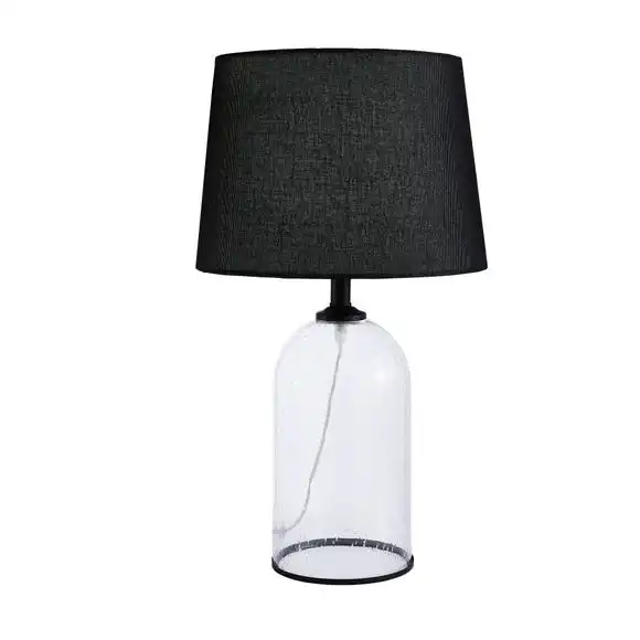 Introduce a timeless design to your home with the stylish Lenny Black Table Lamp. Featuring a beautiful bubbled clear glass bottle base with black metal detailing and a black faux linen shade. Complete with a 1.7m clear cable in-line switch. The Lenny Black Table Lamp is perfect for complementing a range of modern contemporary décor styles and it has matching family items available to help coordinate your home.