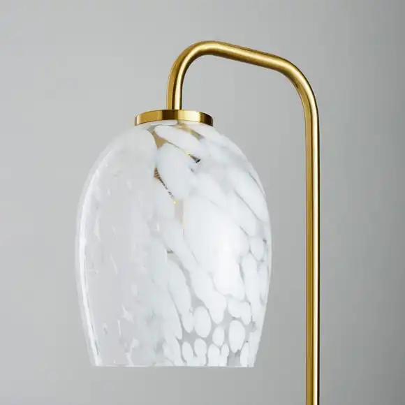 Part of the luxe traveller trend, The Lilo Floor Lamp is perfect for adding a modern, decorative touch to any space. This stunning lamp features a stunning gold effect finish, a chic shallow tortoise and confetti glass shade, and a complementing black fabric flex with an inline foot switch. Matching items are available to help coordinate your home. The Lilo floor lamp is available in two colours.