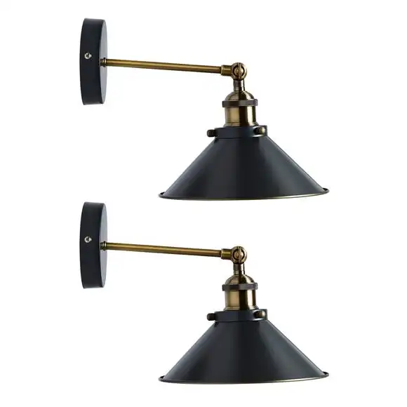 Add a contemporary element to your interior with the beautiful Logan industrial twin pack wall light, stylishly crafted in a dark nickel colourway and painted gold in the inner part of the shade for the best light output. A great way to add a modern and rustic touch to your décor. This Logan Wall Light Twin Pack can be easily fitted to the wall, making it excellent for renters.