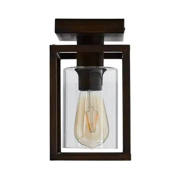 Designed with a bronze painted metal frame, the London Flush Ceiling Fitting would add a modern retro feel to any home. This fitting comes complete with a clear glass shade and a brushed finish to add to the industrial-chic look. This piece is dimmable compatible, making it both an attractive and practical product.
