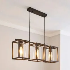 Introduce a contemporary element to your home décor with the stunning London Bronze 3 Light Fitting, crafted with a metal frame, clear glass shades and finished with bronze paint, a perfect way to enhance your décor with a modern and rustic touch. This piece is dimmable compatible, making it both an attractive and practical product.