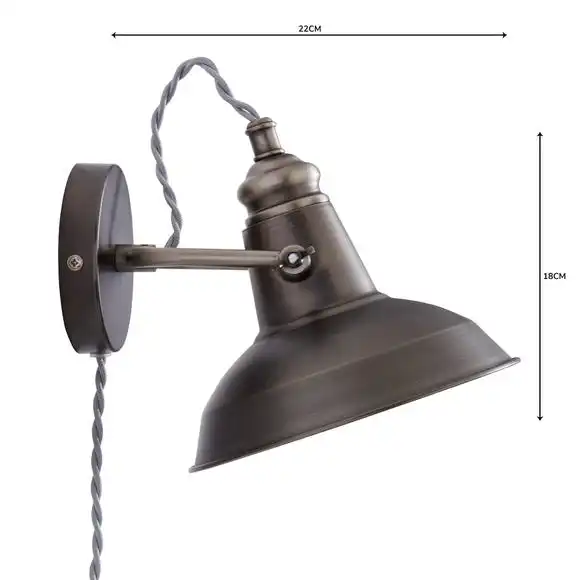 Enhance your home décor with the Lucas Wall Light which also comes with a plug, featuring a twisted fabric flex and industrial detailing, the inside of the wall light has been silver coated for a stunning contemporary appearance that will fit perfectly in a variety of home decors. This light has a cable length of 180cm.