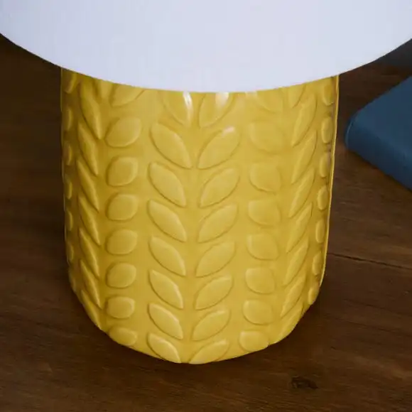 Our Magda table lamp has a ceramic textured leaf finish in a lemon yellow. With an inline switch and a cable length of 120cm.