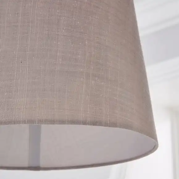 This stunning lampshade will accompany any room of the house with its choice of modern colourways that complement an array of home decors. With a reversible gimble and white frame, this textured, tapered shade is both practical and attractive and other colours and sizes are available.