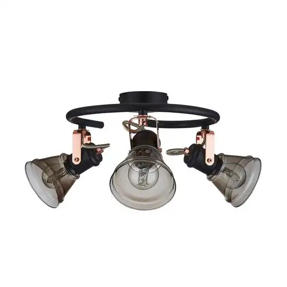 This modern industrial inspired spot light would suit a number of interiors. It features a matt, black body, smoke glass shade and copper detailing which would be perfect for adding a contemporary touch to your home.